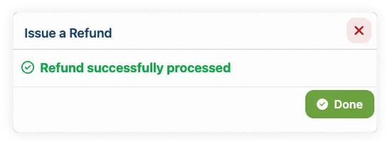 - Review the refund details and click "Refund" button to process.