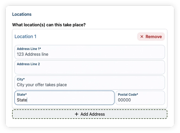 - Describe what you will provide and what should customers need to bring.