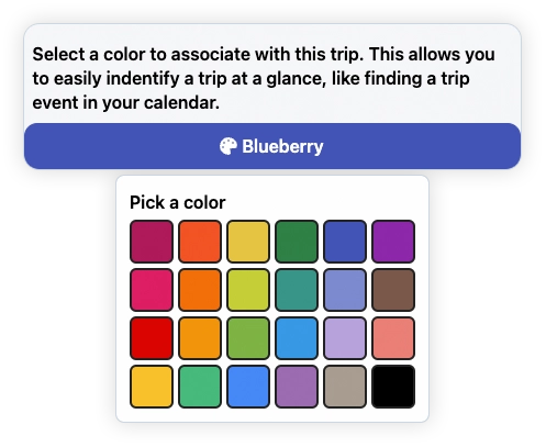 - Select a color for the trip/offer - this color will be the one shown in your calendar view.